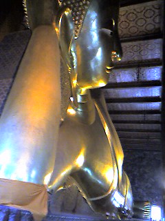| ワット・アルン(暁の寺)暁の時間に朝日に当たってきれいなんだそうですが、これは船から見た夕暮れのワットアルンです |